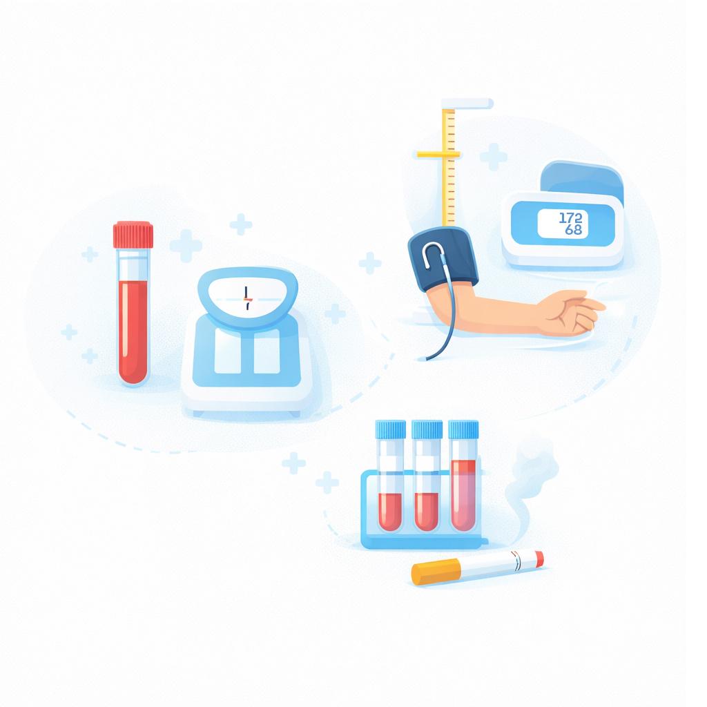- Mõõdetakse vererõhku, pikkust ja kaalu (kehamassiindeksi arvutamiseks).