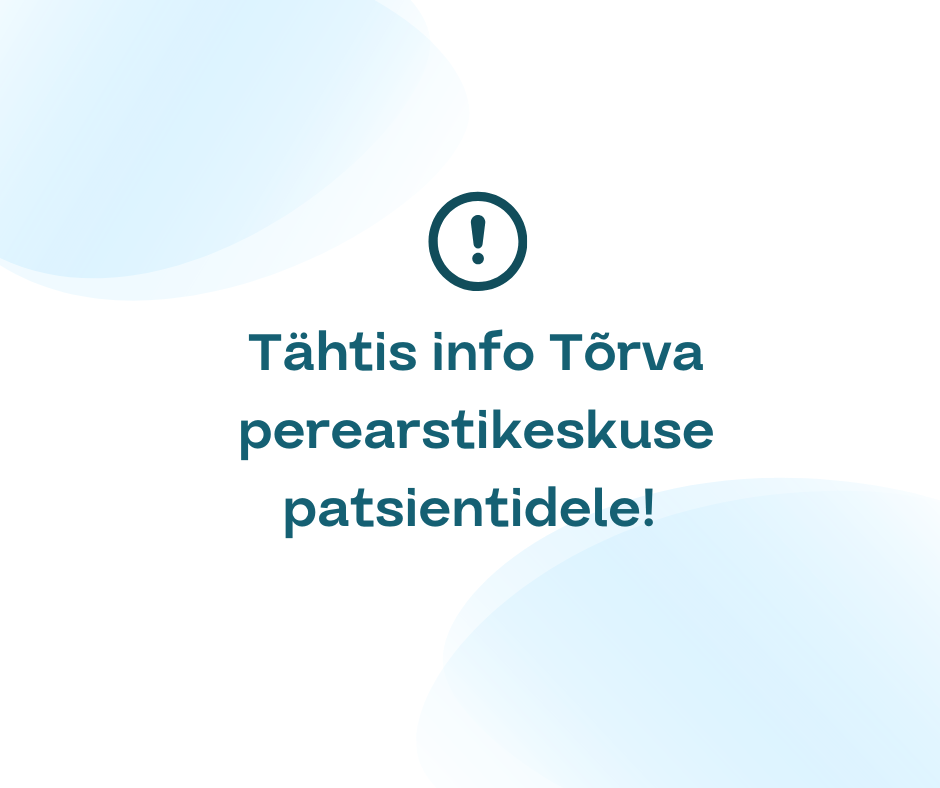 Anname teada, et alates 01.01.2026 ei osuta Terviseagentuur Tõrvas enam perearstiteenust. Soovime südamest tänada kõiki patsiente usalduse ja heade sõnade eest. Uue teenuseosutaja tervisekeskusega saate edaspidi ühendust võtta meiliaadressil tervisekeskus@torva.ee või helistades 766 1001.